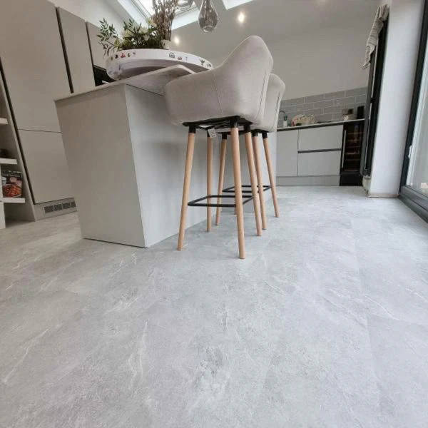 Naturelle Pale Grey Slate Tile SPC rigid core vinyl flooring offers a realistic slate look with durable, waterproof construction and easy click-lock installation for modern interiors.