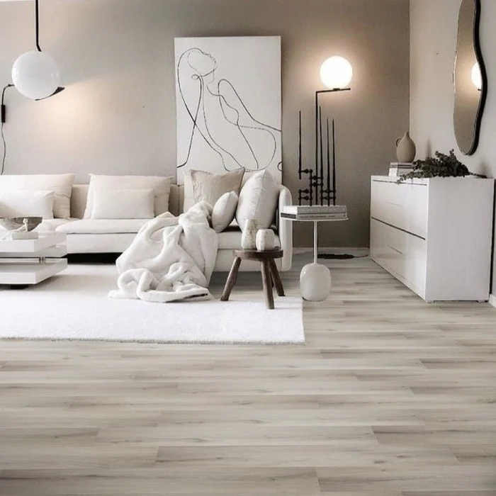 Naturelle Pebble Oak SPC rigid core click vinyl flooring features a natural oak finish with durable, waterproof construction and easy click-lock installation, ideal for modern interiors.